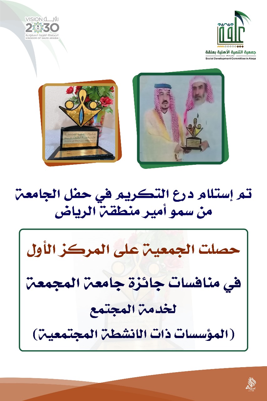 المركز الأول على مستوى جامعة المجمعة في جائزة خدمة المجتمع  ١٦ شراكة مجتمعية