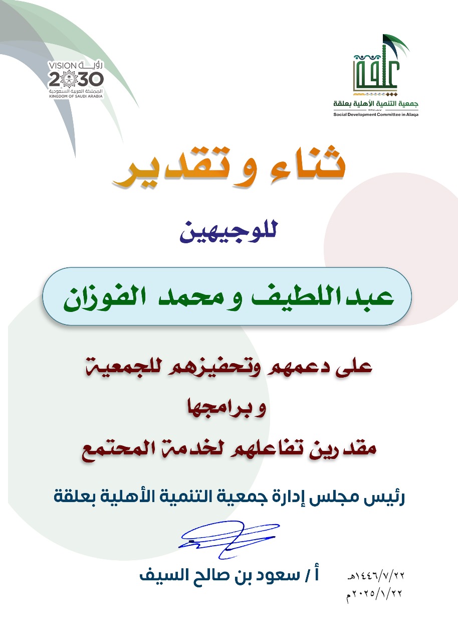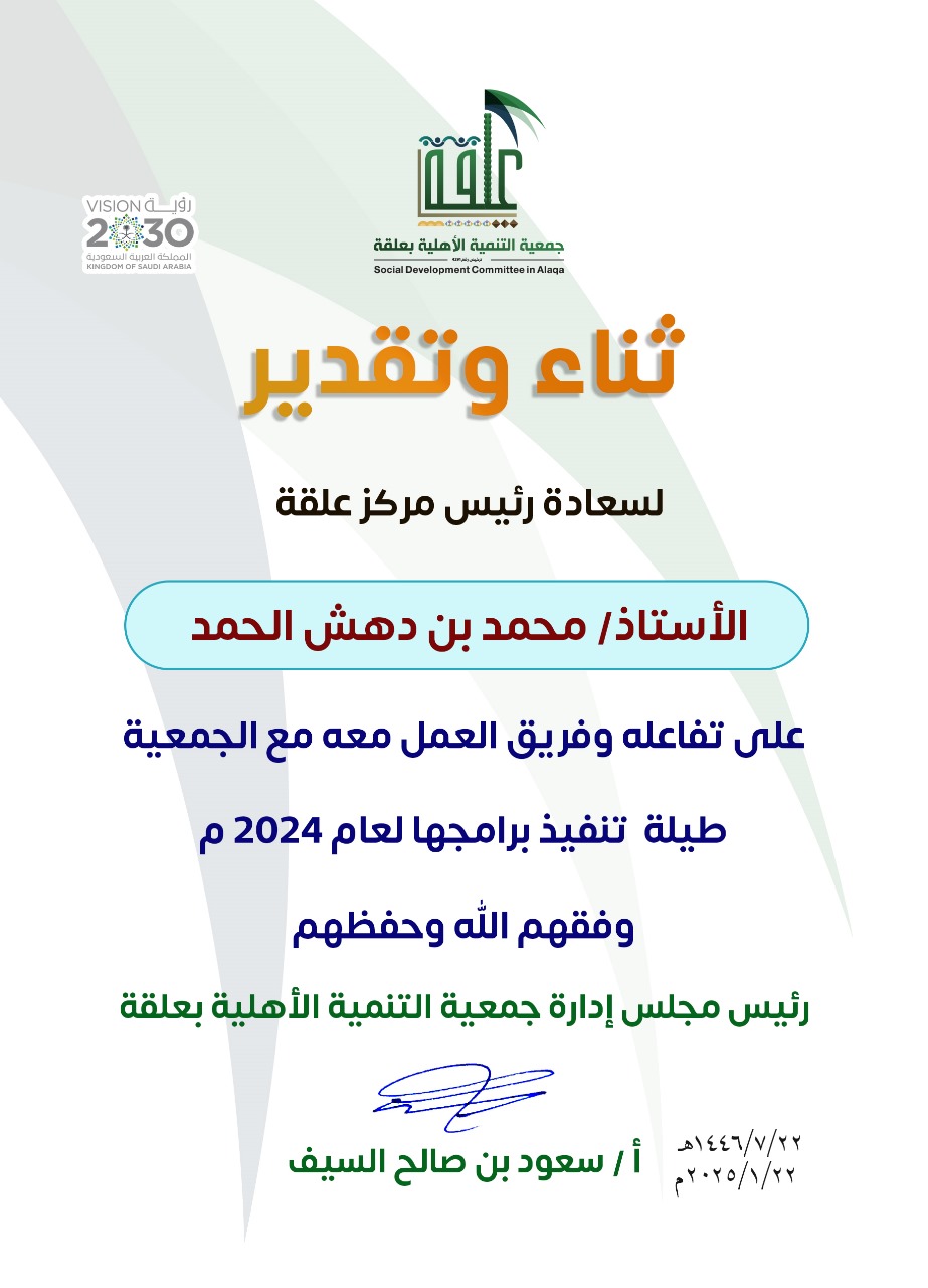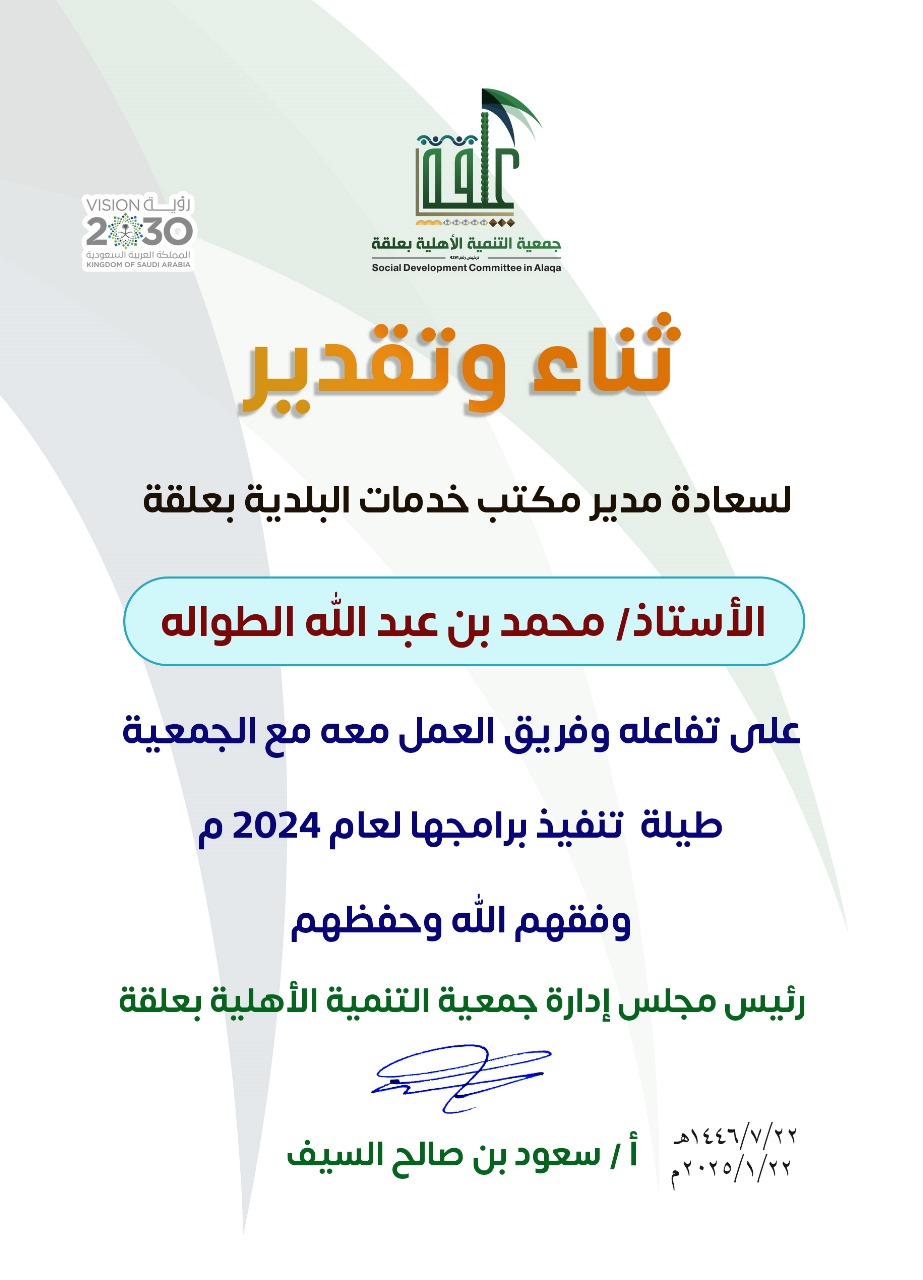 جميع الحقوق محفوظه جمعية التنمية الأهلية بعلقة © 2025